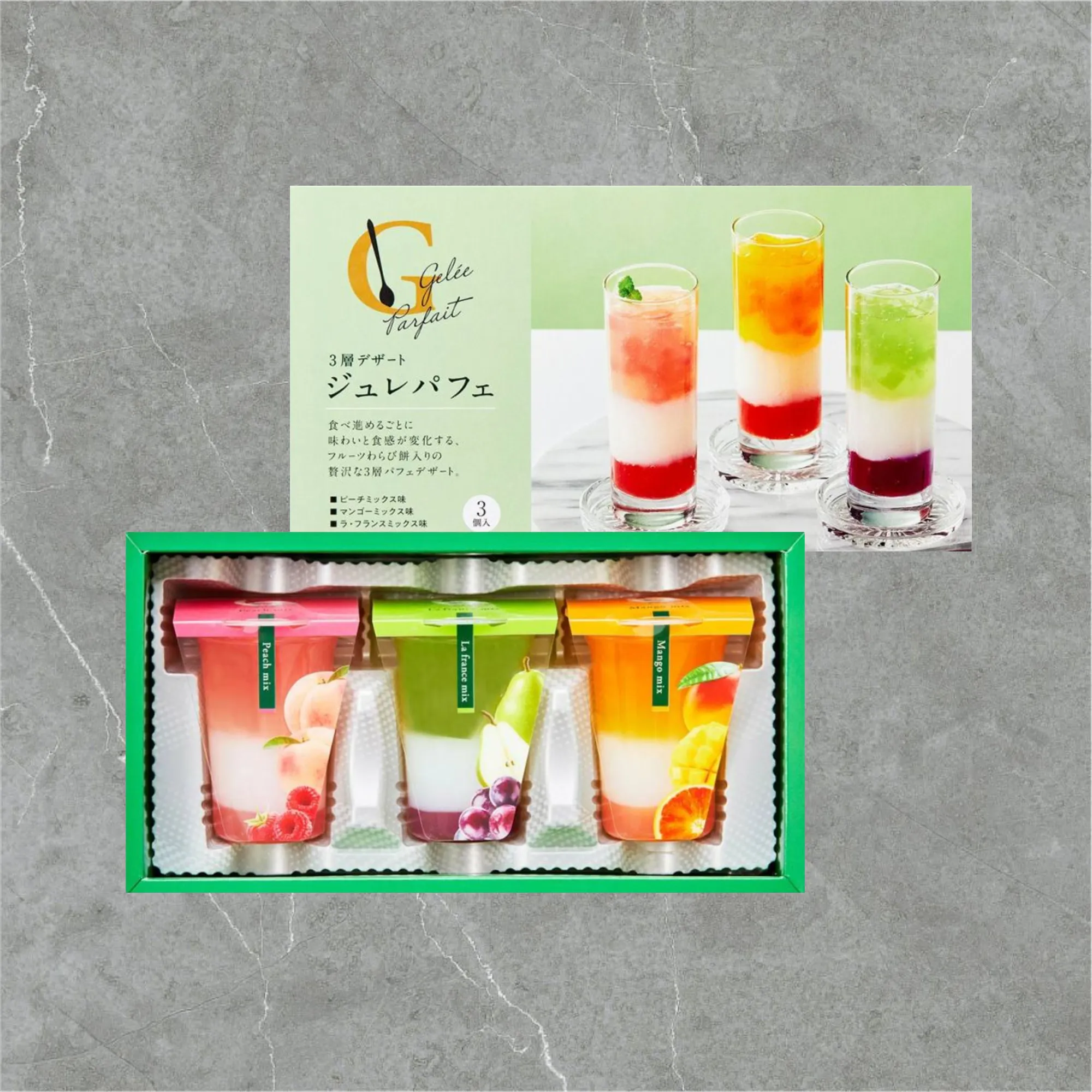 原材料:【ピーチミックス味】砂糖(国内製造)、水あめ混合異性化液糖、桃ピューレ、濃縮桃果汁、還元水飴、乳製品乳酸菌飲料(殺菌)、洋酒、発酵乳(殺菌)、苺加工品、加糖練乳、ラズベリー加工品、ラズベリーペースト、寒天、本わらび粉/ゲル化剤(増粘多糖類)、pH調整剤、乳酸Ca、香料、酸化防止剤(V.C)、酸味料、着色料(アントシアニン、カロテノイド、紅麹)、(一部に乳成分・ゼラチン・大豆・ももを含む)【マンゴーミックス味】砂糖(国内製造)、水あめ混合異性化液糖、マンゴーピューレ、濃縮オレンジ果汁、還元水飴、乳製品乳酸菌飲料(殺菌)、発酵乳(殺菌)、濃縮パッションフルーツ果汁、加糖練乳、洋酒、寒天、本わらび粉/ゲル化剤(増粘多糖類)、pH調整剤、安定剤(加工デンプン、ペクチン)、乳酸Ca、香料、酸化防止剤(V.C)、カロテノイド色素、(一部に乳成分・オレンジ・ゼラチン・大豆を含む)【ラ・フランスミックス味】砂糖(国内製造)、水あめ混合異性化液糖、ラフランス果汁、濃縮りんご果汁、還元水飴、乳製品乳酸菌飲料(殺菌)、発酵乳(殺菌)、洋酒、濃縮ぶどう果汁、加糖練乳、寒天、本わらび粉/ゲル化剤(増粘多糖類)、pH調整剤、乳酸Ca、香料、着色料(アントシアニン、クチナシ、カロテノイド)、酸化防止剤(V.C)、(一部に乳成分・ゼラチン・大豆・りんごを含む)