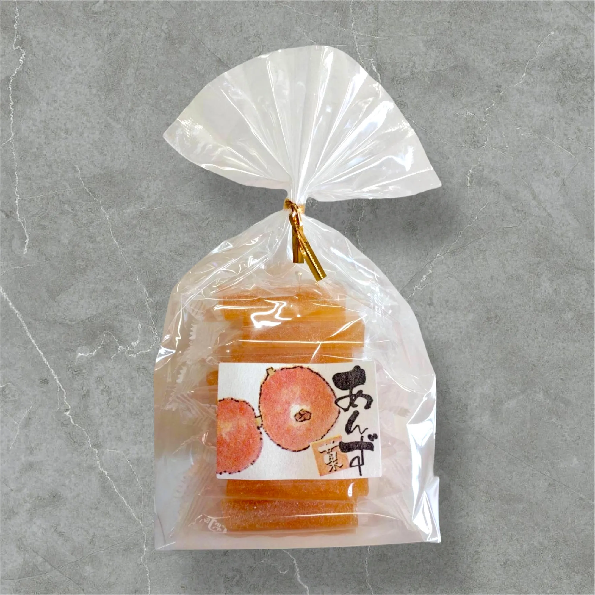 原材料:水飴(国内製造)、砂糖、あんず果汁、粉末オブラート(でん粉)/ゲル化剤(ペクチン)、酸味料、香料、レシチン(大豆由来)