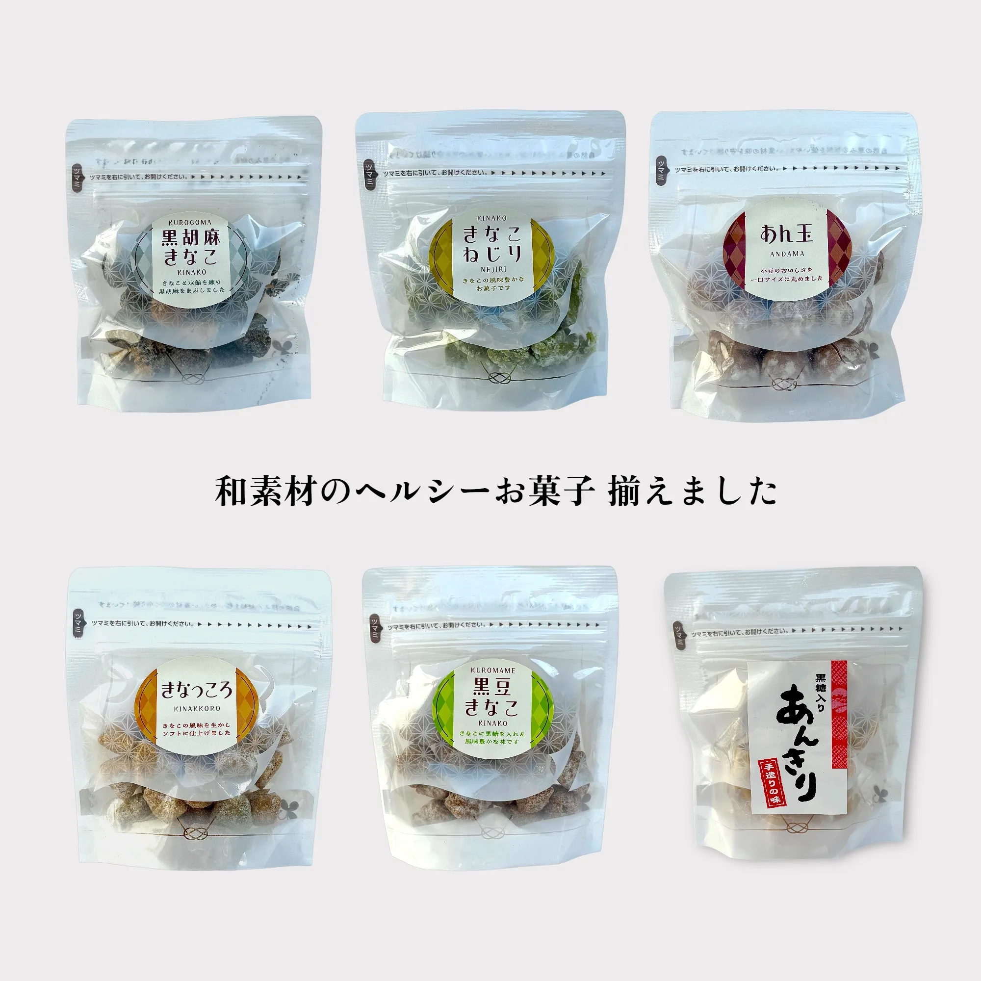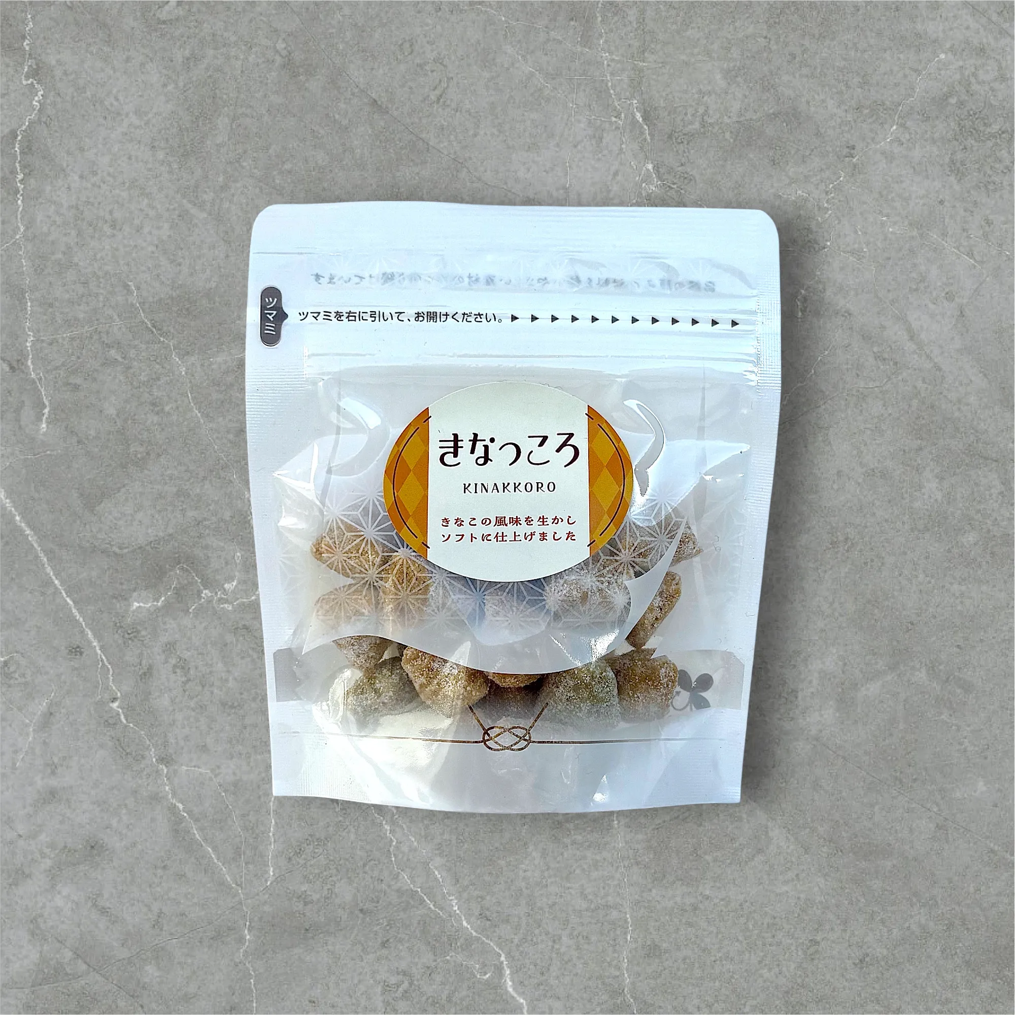 きなこの風味を引き出し練り上げた、素朴で懐かしい一口菓子。きなこは、メーカー用に特別焙煎されたきなこを使用。香ばしいきなこの風味を生かし、シンプルな素材で仕上げた甘さ控えめのヘルシーなお菓子です。