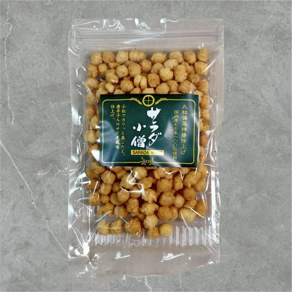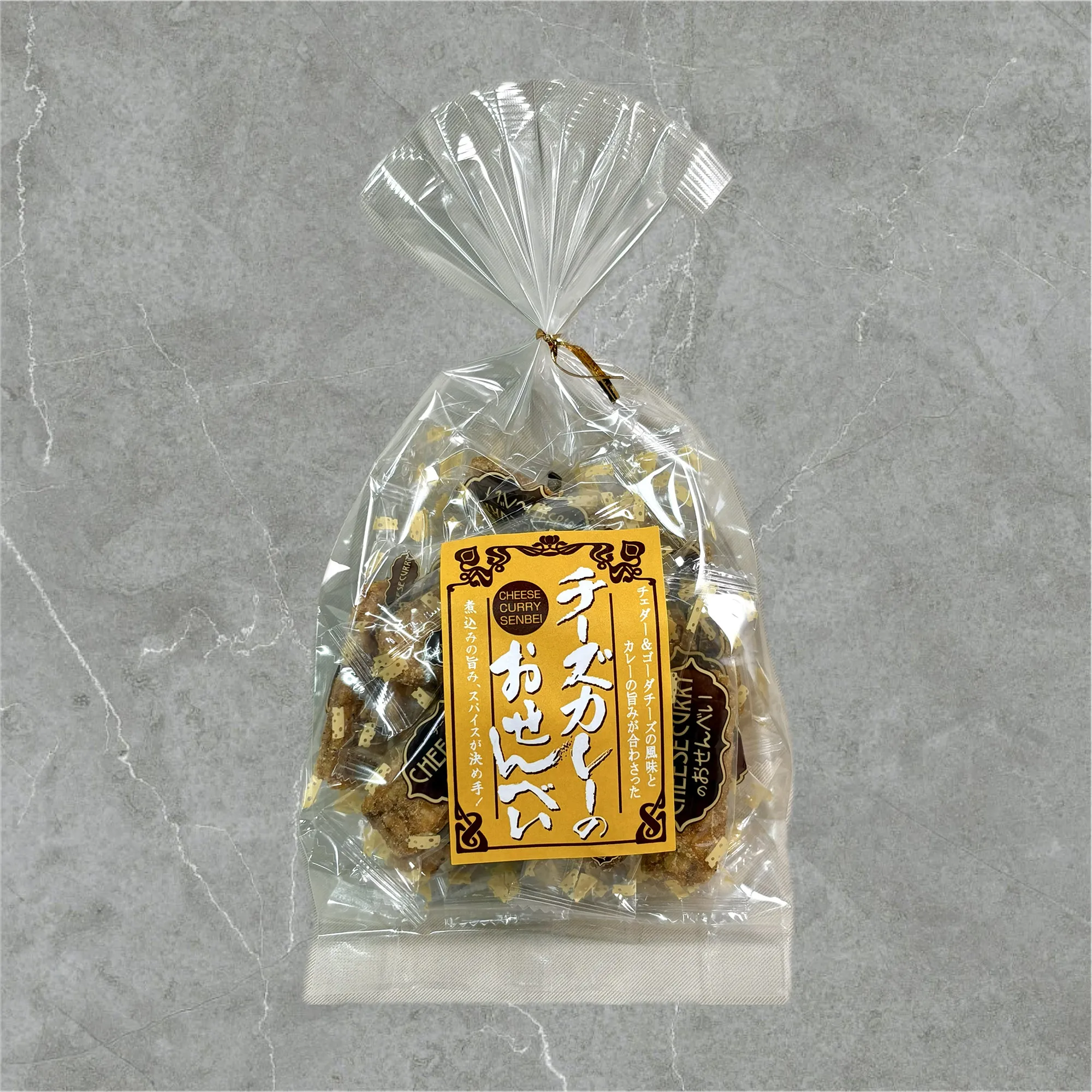 原材料:うるち米(国産)、カレーたれ(砂糖、醤油、水飴、デキストリン、ウスターソース、香辛料、醸造酢、ホエイパウダー、植物油脂、食塩、風味調味料(鰹)、オニオンエキス)、植物油脂、チーズシーズニング、黒胡椒 / 調味料(アミノ酸等)、増粘剤(加工澱粉)、トレハロース、香料、乳化剤、カラメル色素、甘味料(甘草、ステビア)、酸味料、(一部に小麦・乳成分・大豆・りんごを含む)