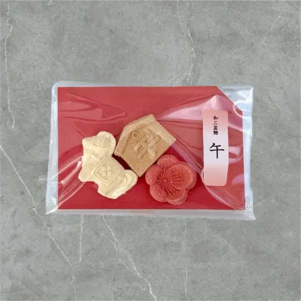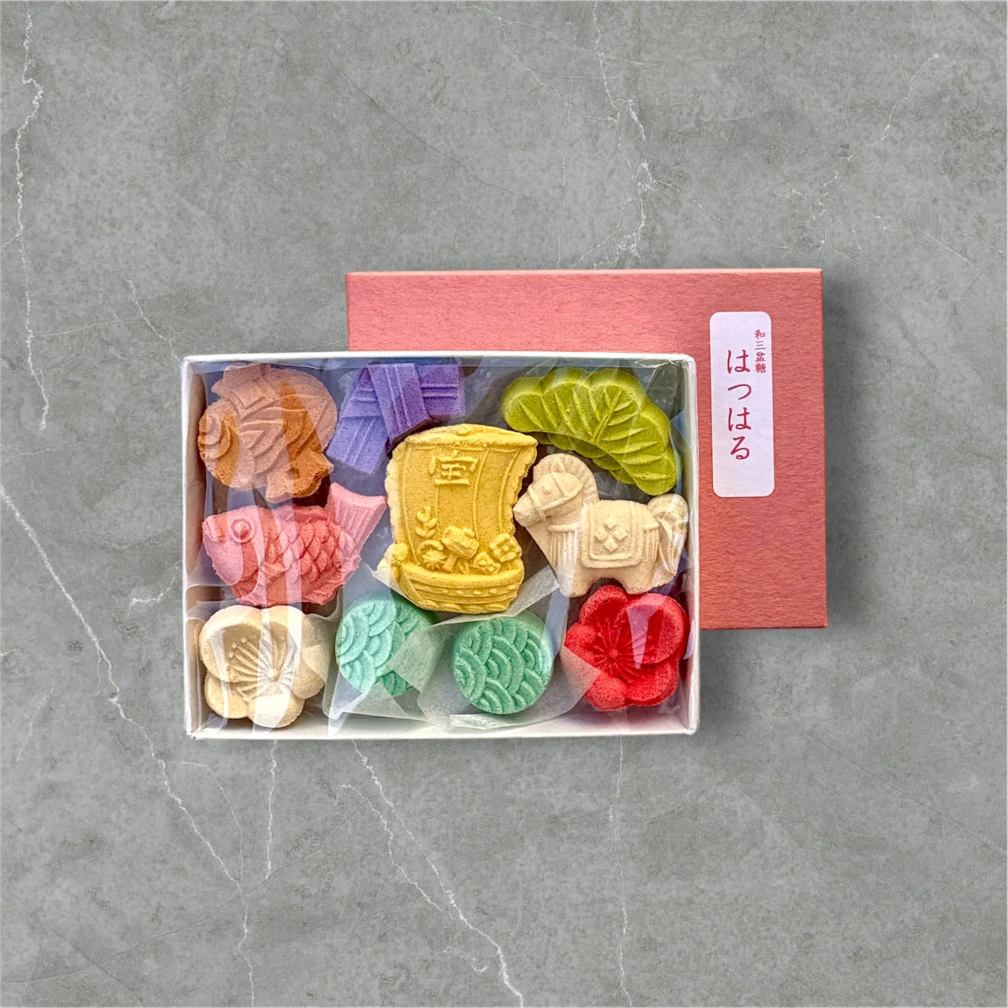 昔ながらの製法から生まれる、香川県・徳島県産の和三盆糖を100%使用。ミネラル豊富なやさしい甘さを、上品で縁起の良いカタチで。