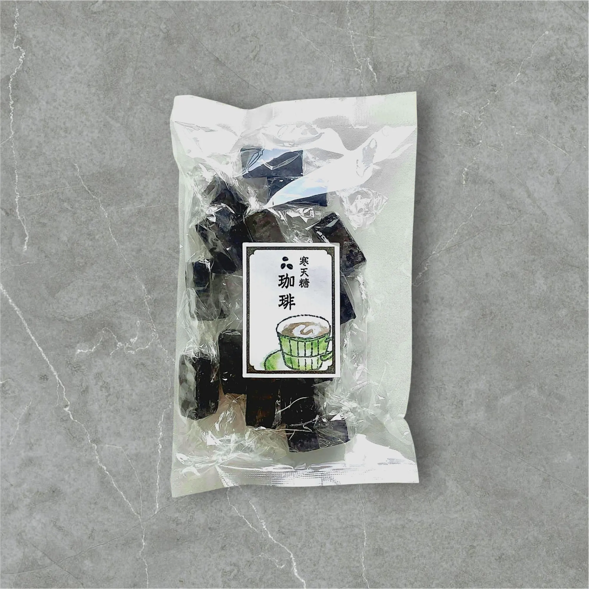 原材料:砂糖(北海道産)、水あめ、粉末コーヒー、寒天、オブラート(でん粉)、/レシチン(大豆由来)