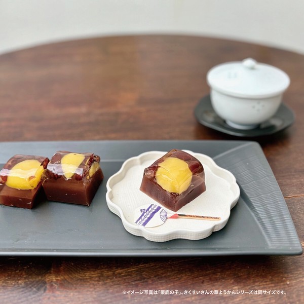 大阪下町の水菓子専門メーカーより。職人の手仕事で、細かい飾りこみを施した“華ようかん”。小豆あんに、カラフルな3輪のチューリップを。