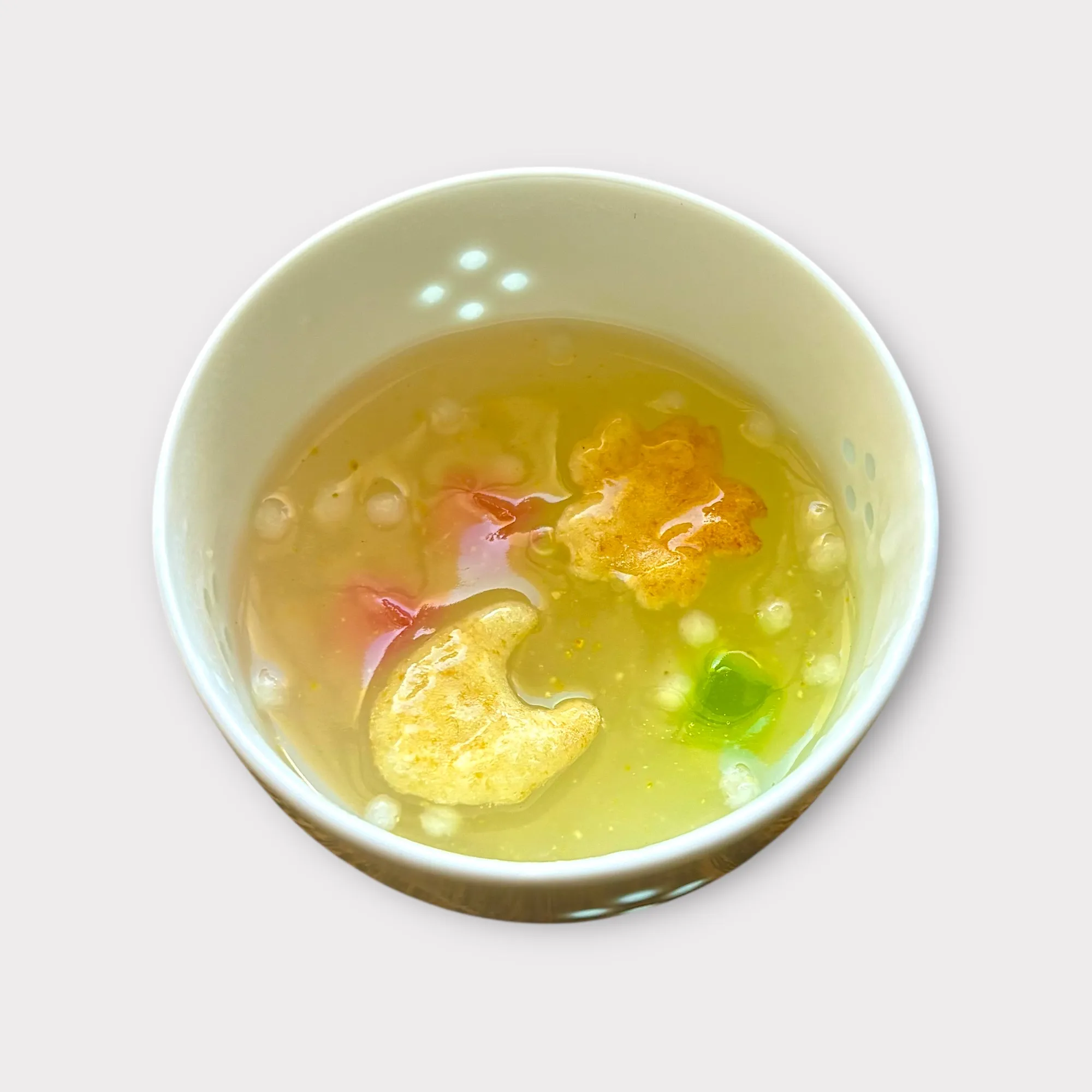 熱湯を注げば舞い踊る、愛らしい形のあられや彩り豊かなゼリー。風情のある和紙に包まれた、くず湯やしるこのシリーズです。