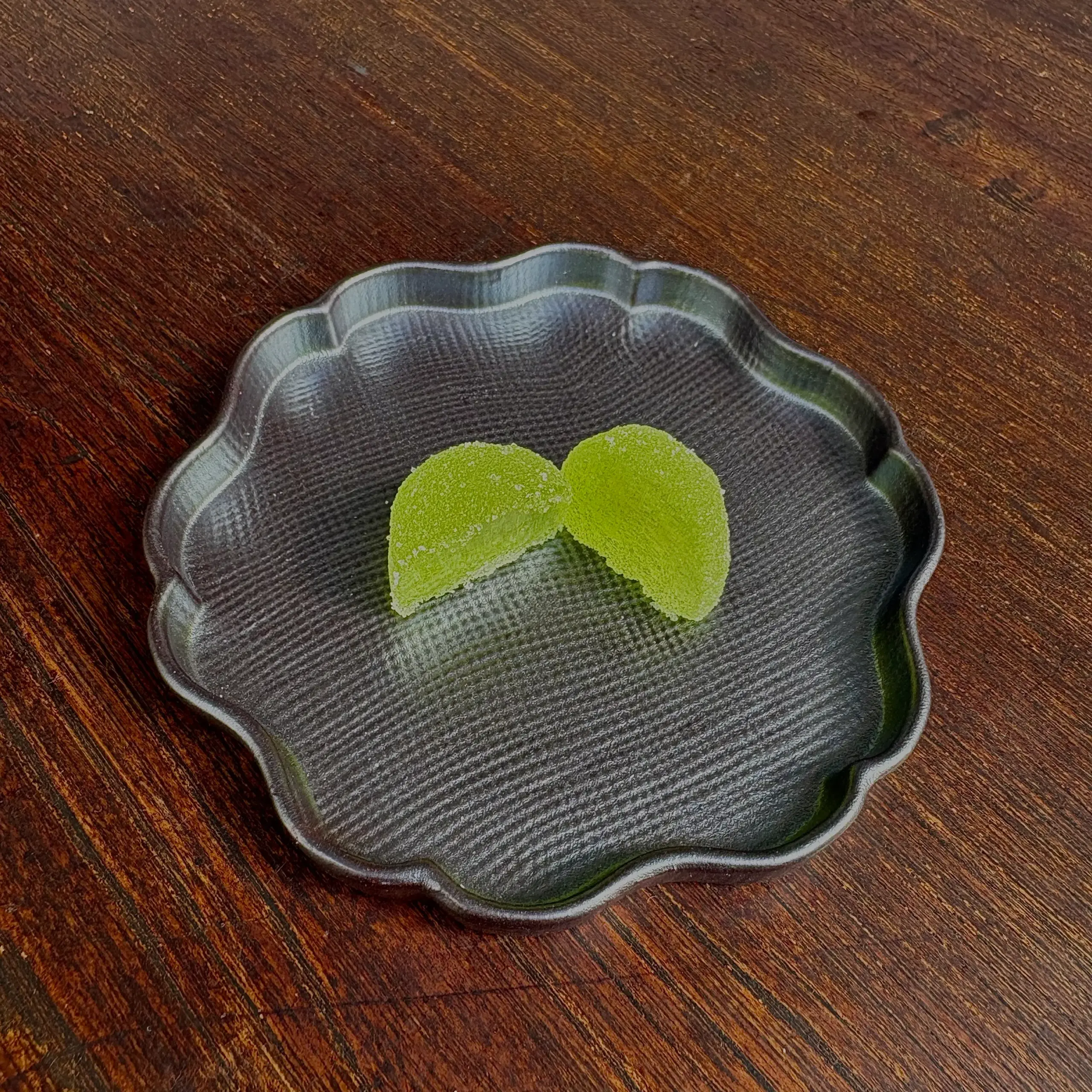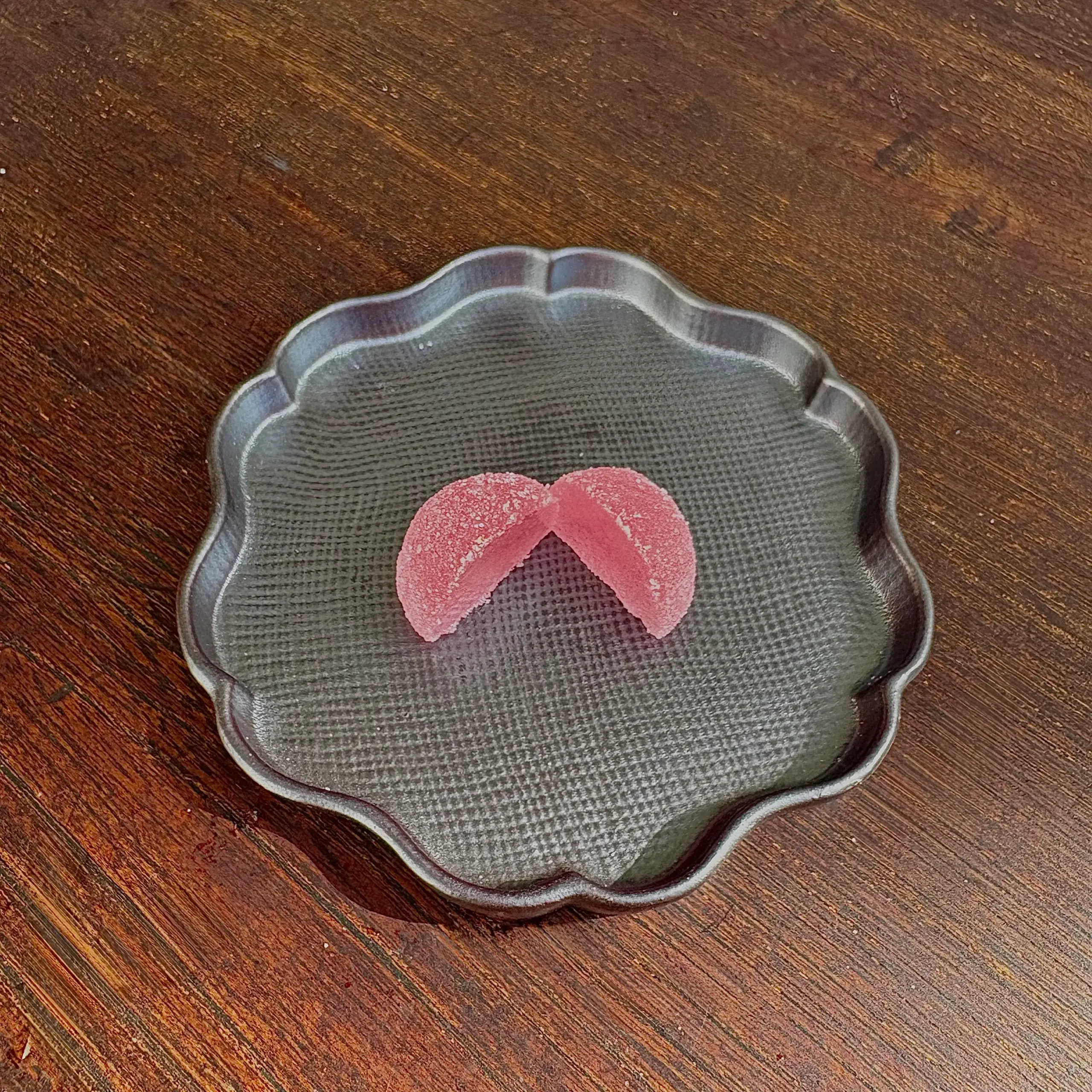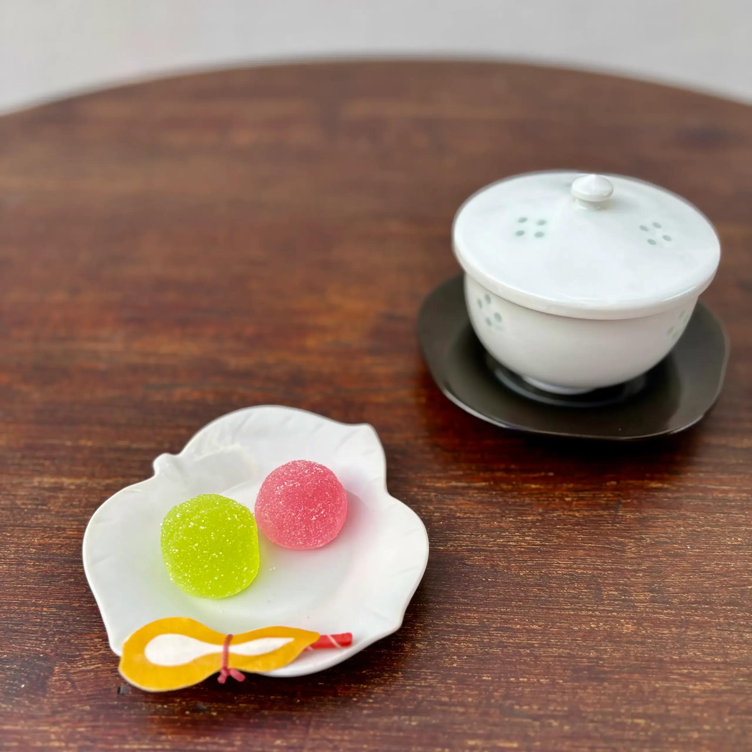 京都の半生菓子専門メーカー様より。まん丸かわいい、半透明の緑と赤。天然の食物繊維・ペクチンを使用、上品な甘さで食感もっちり。ひと口サイズのゼリーです。