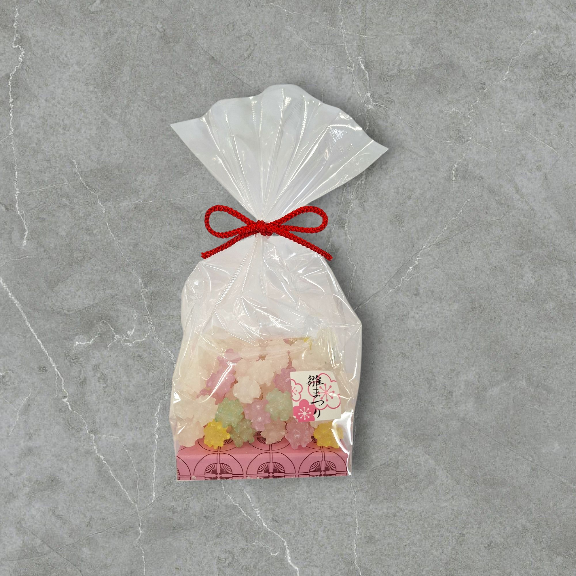 カラフルな彩りは、天然色素使用。香料不使用でグラニュー糖だけの、シンプル原材料の金平糖。食べる人を選ばない、ひなまつりのお菓子です。